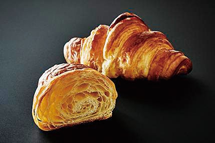 プレミアムクロワッサンの食感のひみつは、3×4=12層に折り込まれた生地にあり。焼き上げられた生地は、層と層の間に絶妙に空気を含むことで、口に入れた瞬間の「ザクッ」とした食感が埋まれ、フランス産高級発酵バターの芳醇な香りが「フワッ」と広がります。