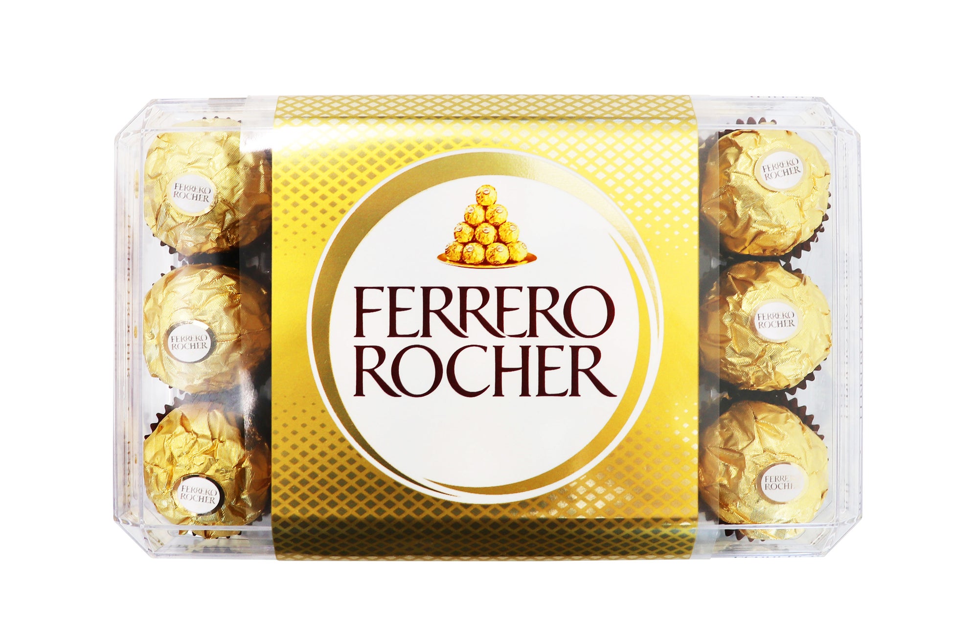 厳選されたヘーゼルナッツをココアヘーゼルナッツクリームとウエハースで包みクラッシュヘーゼルナッツとチョコレートでコーティングした「Ferrero Rocher (フェレロ・ロシェ)」。サクッした食感とクリーミーで香ばしい味が楽しめる大人の甘さのチョコレート菓子です。