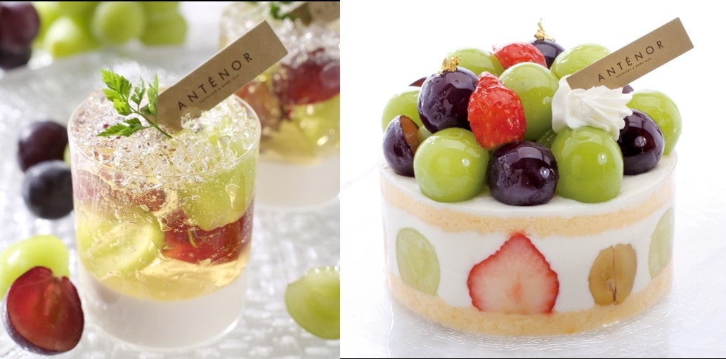 神戸生まれのパティスリー「アンテノール」ではぶどうが主役のみずみずしいスイーツを、期間限定でご用意いたします。糖度が高くぶどうの王様として不動の人気である「巨峰」、長野県で生まれ贈答品としても人気の高い「ナガノパープル」、上品で華やかな香りの「シャインマスカット」を使ったケーキを順次販売いたします。