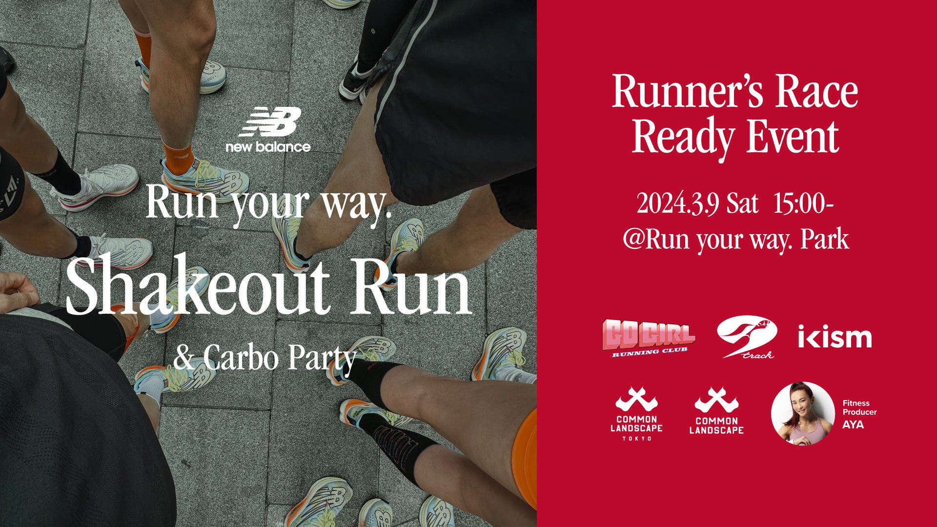 レース前の緊張をほぐし、シェイクアウト(雑念を振り払う)するとともに、名古屋の街を走れる喜びをみんなでセレブレーションするプレランニングイベント「Run your way. Shakeout Run」をレース前日、3月9日(土)に開催!スペシャルゲストのフィットネスプロデューサー/フィットネスモデルの AYAさんによるウォームアップのあと、総勢200名で名古屋の街をジョギングします。シェイクアウトランのあとはレースへのエネルギーを蓄えるカーボローディングパーティーを開催。翌日のレースに向けて、ココロもカラダもスイッチを入れましょう!
