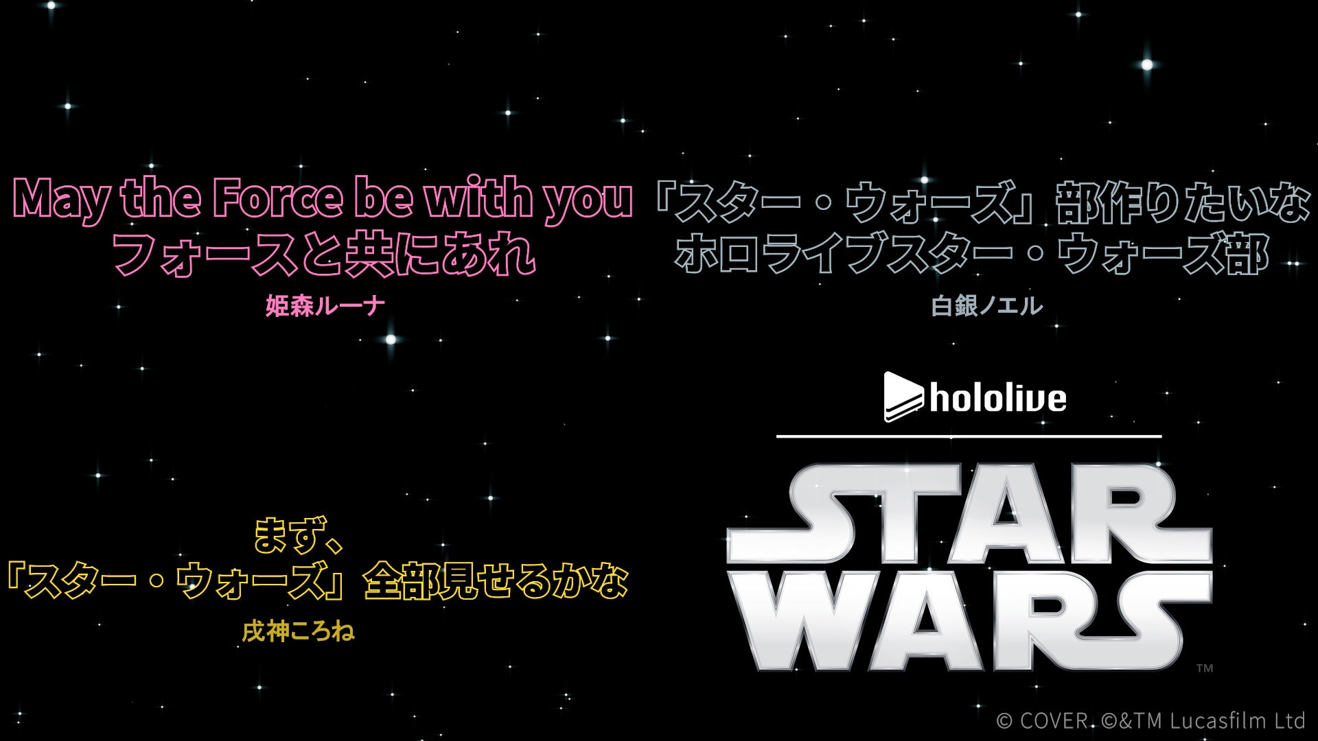 4月27日(日)には、ホロライブプロダクション公式X(旧Twitter)にて、3名のスター・ウォーズに関する過去配信からのコメントを抜粋した動画が投稿され、彼女たちの「スター・ウォーズ」愛が伝わってくる内容となっております。