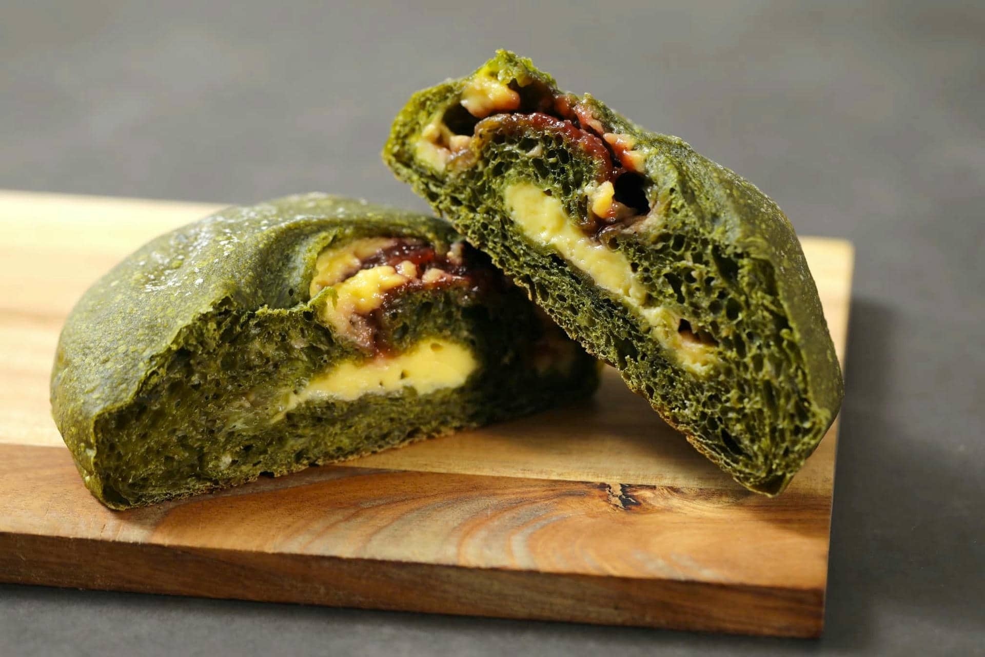 いしさが絶妙にマッチします。生地の鮮やかな緑色が美しい、和と洋が融合した新感覚の味