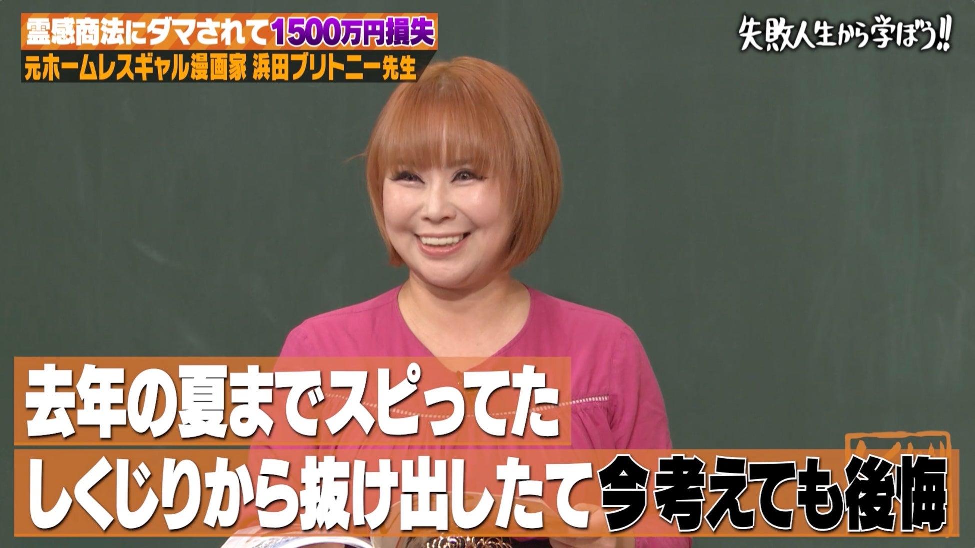 冒頭、「スピリチュアルにどハマりした結果1500万円をつぎ込み多くの友達を失い5000時間以上の膨大な時間を無駄にした」と自身のしくじりを明かしたブリトニー先生。今回の授業では、「去年の夏までスピっていたので、しくじりから抜け出したて。今考えても後悔しかない」と語るブリトニー先生が、スピリチュアルにハマるきっかけとなった“占い”から霊感商法に引っかかるまでの経緯を赤裸々告白しました。