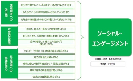 就業者の社会課題解決への関心の強さや責任感、課題解決への効力感を「ソーシャル・エンゲージメント」として測定。