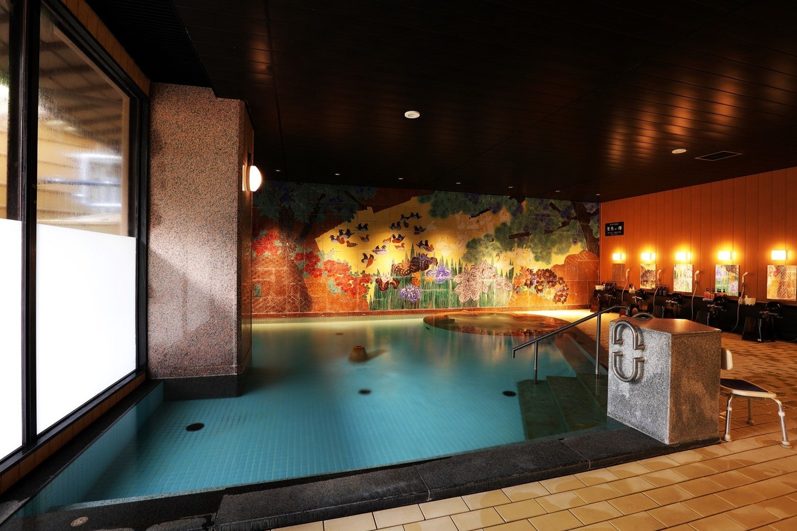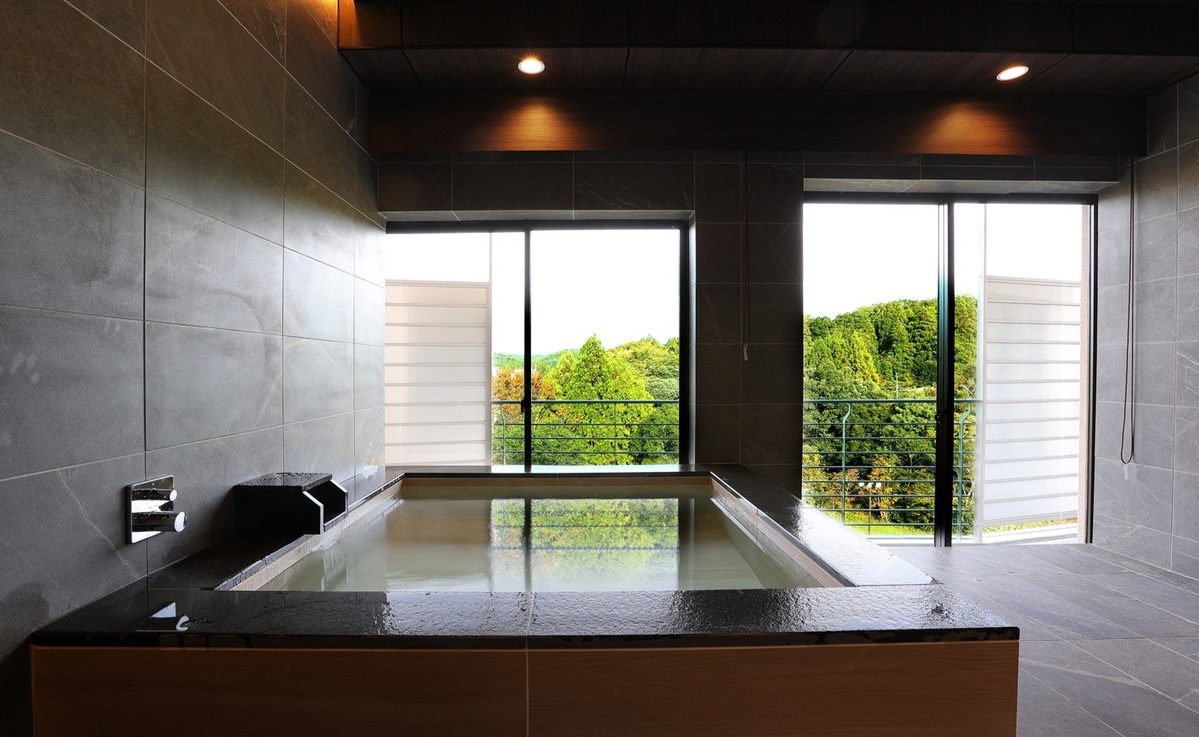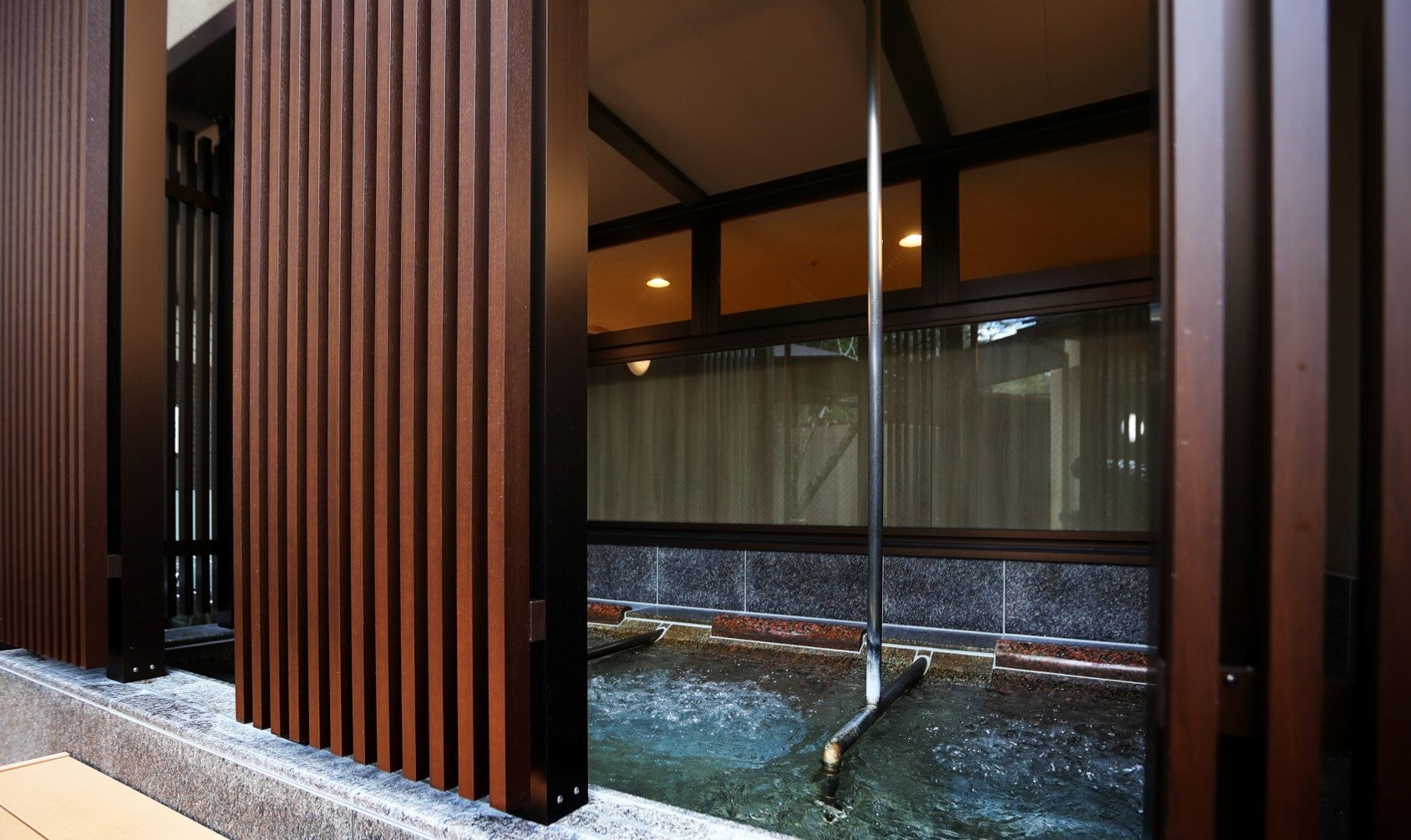改修工事は、「四季の変化を感じられる、五感に響く上質な大人の空間」をコンセプトとして実施しました。客室のデザインは、多様化するお客様のご要望や期待にお応えし、海外のお客様にも日本の伝統を感じていただけるよう、和室・特別室など今までの6つの客室タイプから、全客室にベッドを設置し、1室だけの特別な客室として、バルコニーから四季折々の自然が望め、半露天風呂付きの83㎡のロイヤルスイートルーム、小さなお子様がいらっしゃるご家族や三世代旅行におすすめの、旅館では珍しい2段ベッドを設置したファミリースイートルーム、グループ旅行に便利なベッドを4台設置した和モダンフォースルーム、露天風呂付和モダンツインルームなど、全10タイプ57室の客室をご用意しました。温泉大浴場には、寝ころびながら温泉をお楽しみいただける「寝湯」、食事処にはロイヤルスイートルームにご宿泊のお客様専用の個室を新設し、ロビーラウンジは新しいインテリアを採用してデザインを一新し、夕方以降はライトアップされた庭園をお楽しみいただけるくつろぎのスペースとなりました。