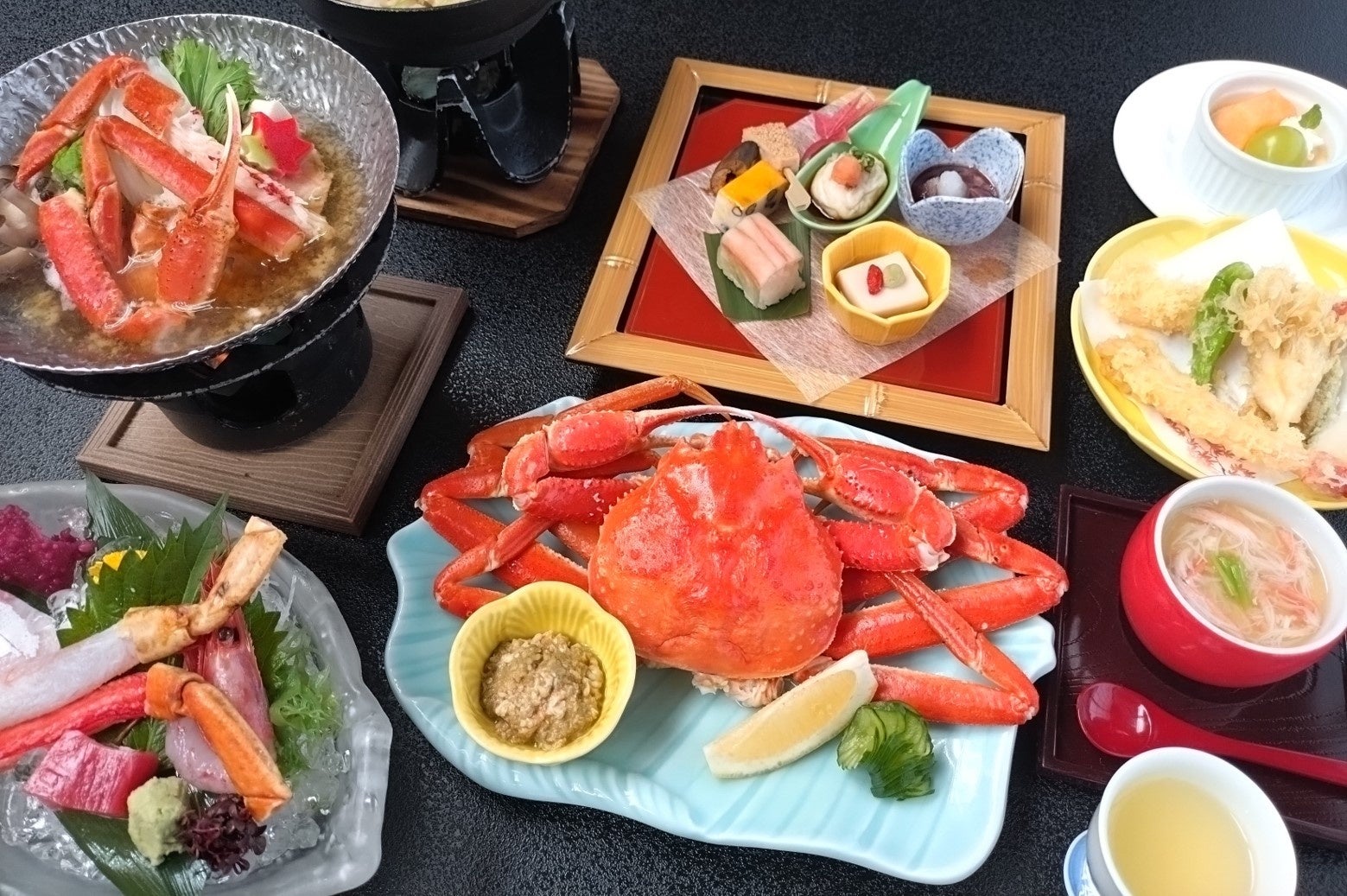 左:蟹会席イメージ、右:温泉イメージ