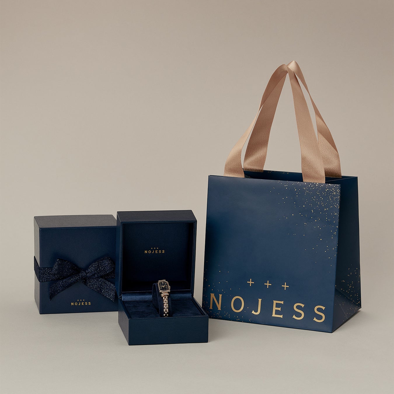 ネイビーとゴールドでオーロラが煌めく世界観を表現したスペシャルボックス。潔くシンプルに仕上げたデザインがジュエリーの美しさを引き立てます。
