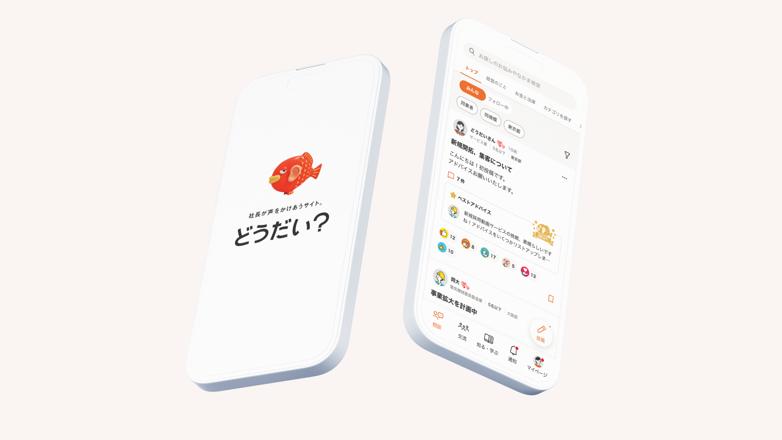 チームラボは、大同生命保険株式会社が提供する、中小企業経営者向けコミュニティサイト「どうだい?」の公式アプリの新規構築において、企画、UI/UX設計、デザイン、フロントエンド開発を一貫して担当しました。