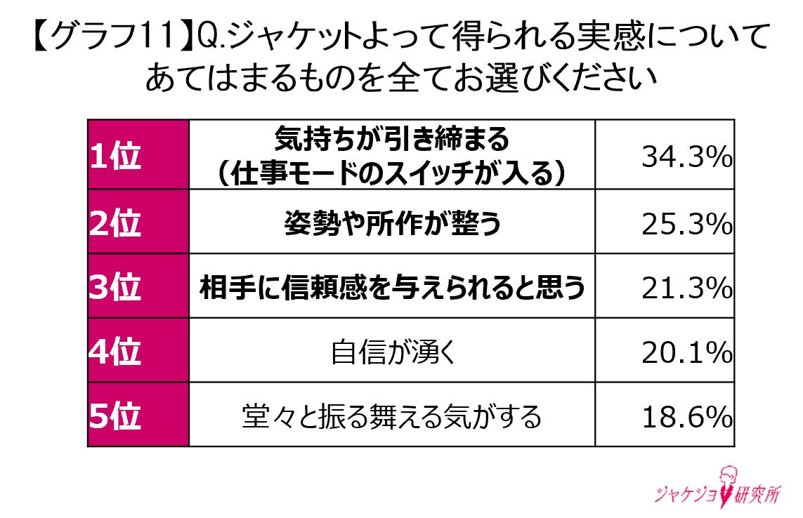 「気持ちが引き締まる(34.3%)」「自信が湧く(20.1%)」内面から行動を後押しする側面が明らかに