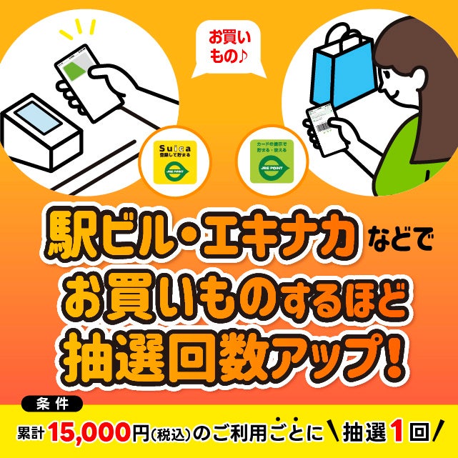 駅ビルやエキナカなどの対象店舗でのお買いもの累計15,000円(税込)のご利用ごとに抽選1回