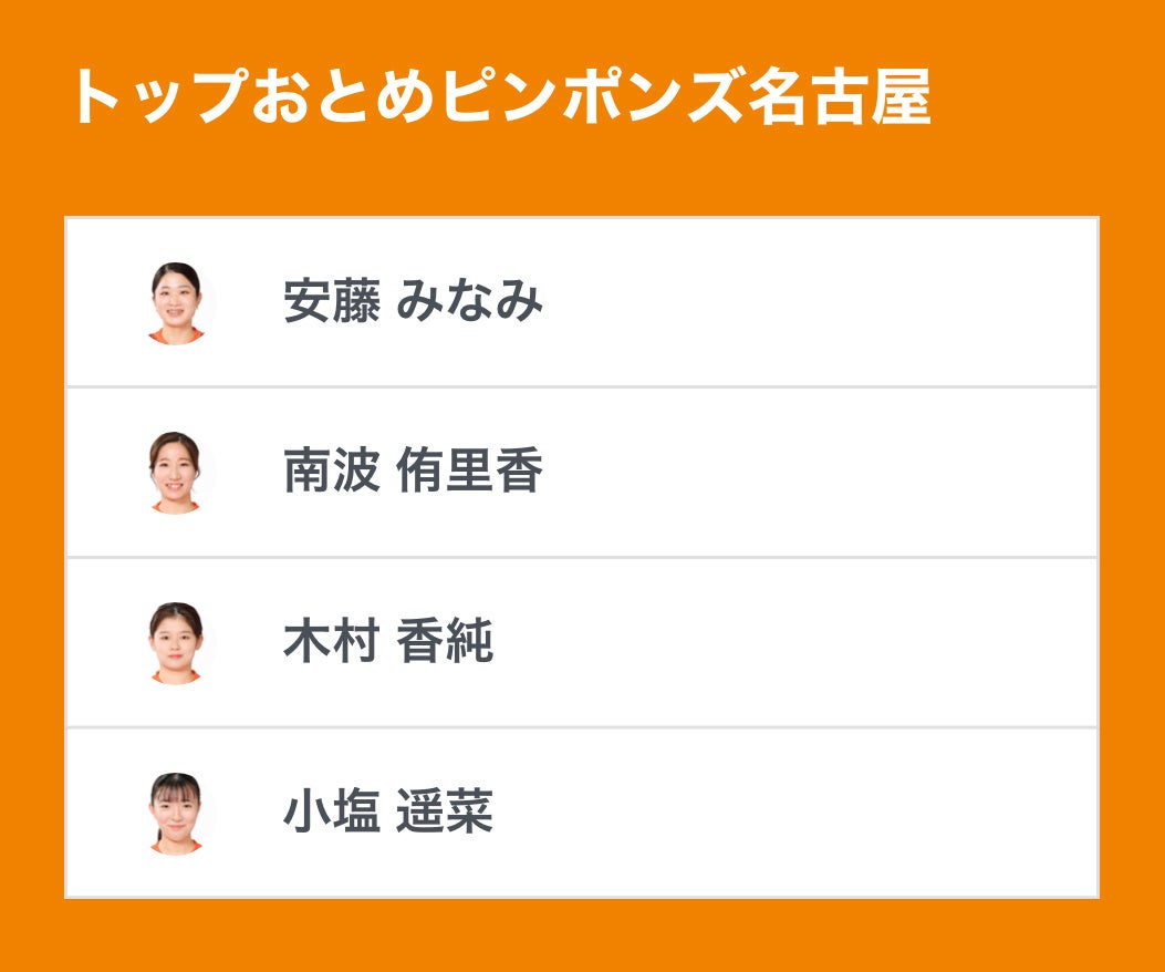 ノジマTリーグ2023-2024シーズン公式戦 11月3日(金・祝) 九州アスティーダ vs トップおとめピンポンズ名古屋 ベンチ入りメンバーを発表いたします。