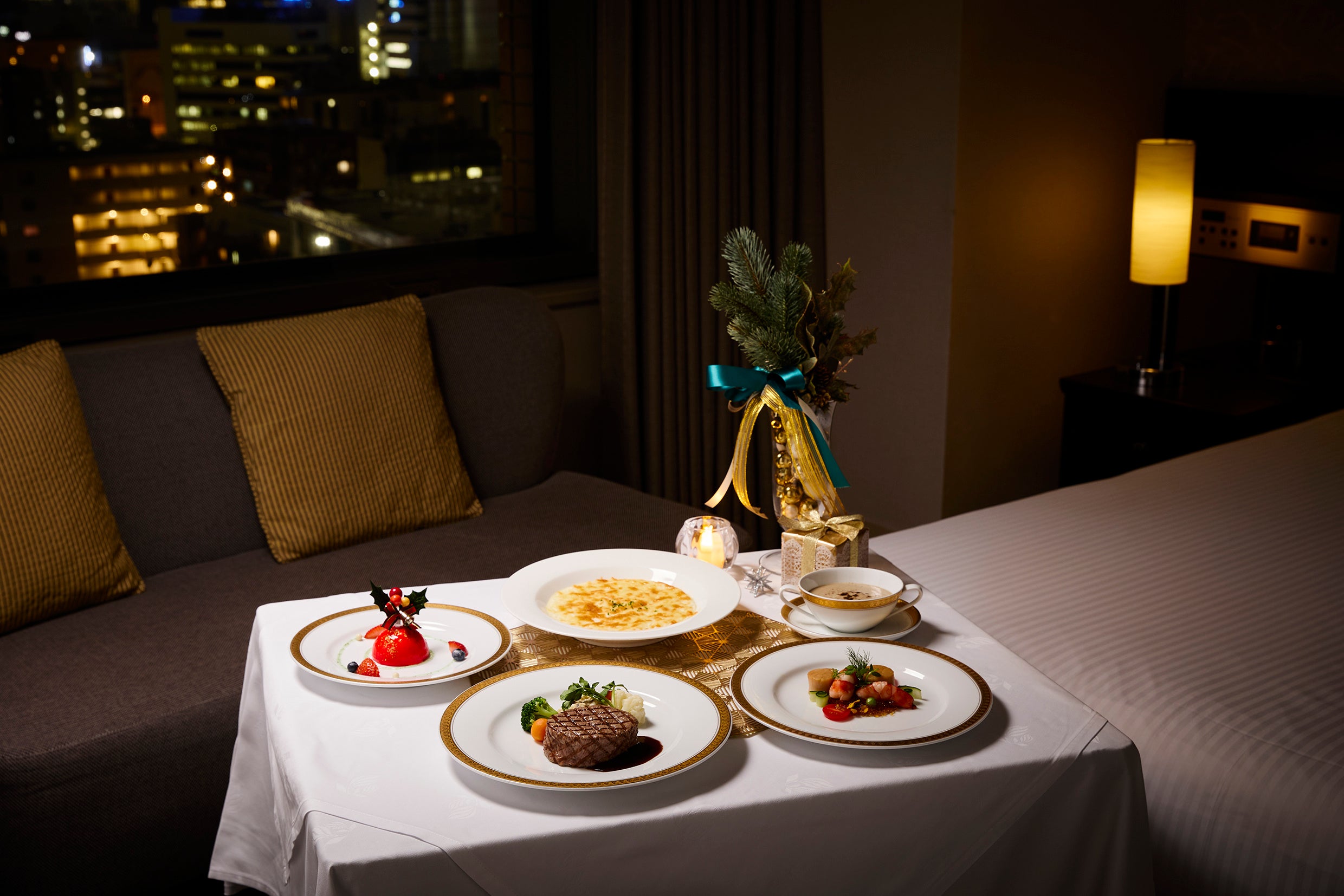ディナーの余韻をお部屋でシャンパン片手に楽しんだり、クリスマス女子会としてお部屋でおしゃべりに華を咲かせたり、窓に広がる東京の夕暮れや夜景を眺めながら、思い思いの素敵なクリスマスナイトをお過ごしください。