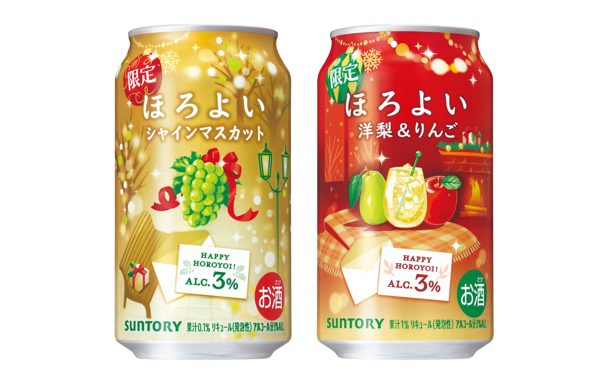 サントリー(株)は、「ほろよい〈シャインマスカット〉」「同〈洋梨&りんご〉」を12月3日(火)から全国で期間限定新発売します。
