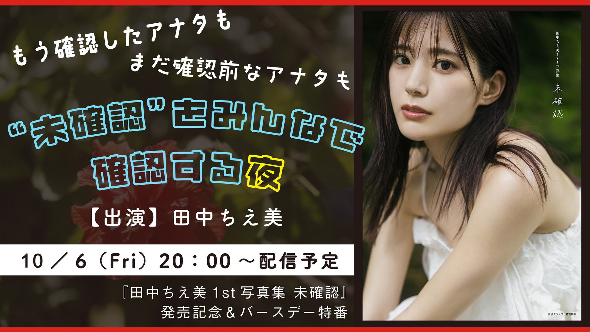 「“未確認”をみんなで確認する夜~『田中ちえ美1st写真集 未確認』発売記念&バースデー特番~」の生配信が緊急決定!