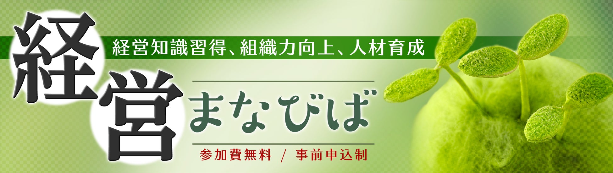 昨今、不透明な市場環境の下、中堅・中小企業にとって経営者・経営層・次世代経営者の経営知識習得と人間力向上は持続的な成長に欠かせないものとなってきています。「経営まなびば」は、「経営の基本を学びたい」というお客様のため、経営理念・事業戦略・組織戦略の三つの視点から必要不可欠な経営知識多彩なコースで習得する無料オンラインプログラムです。