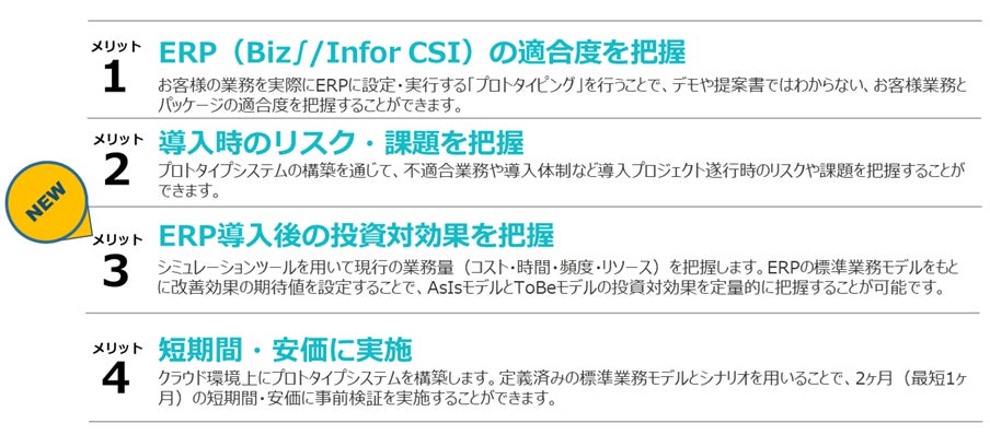アグレックス、ERPシステム導入時の適合性や課題検証を行うERP Biz∫・Infor CSI向け「体感型PoCサービス」に、投資対効果を数値化するシミュレーション機能を新たに追加