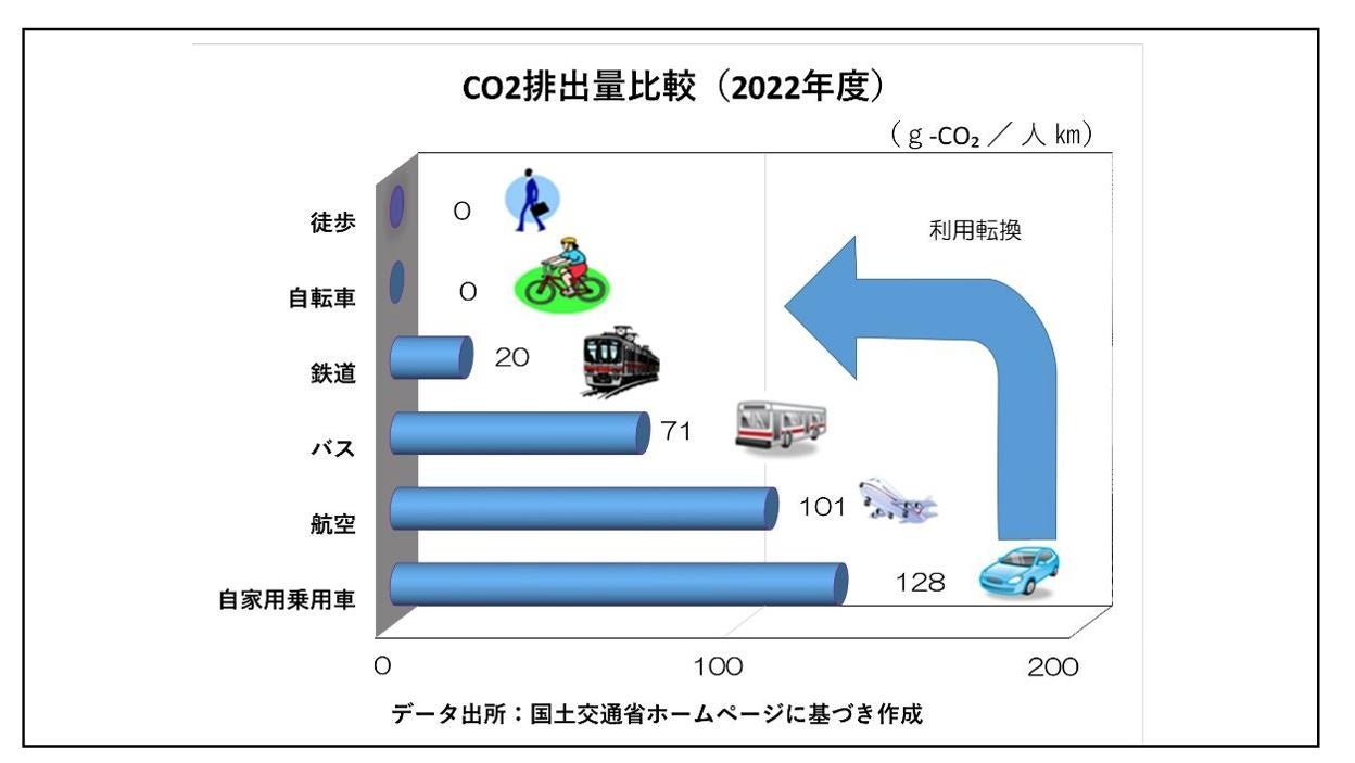 鉄道やバス等の公共交通は、一度に多くの旅客を運ぶことができるという点で、乗用車よりもCO2排出量が