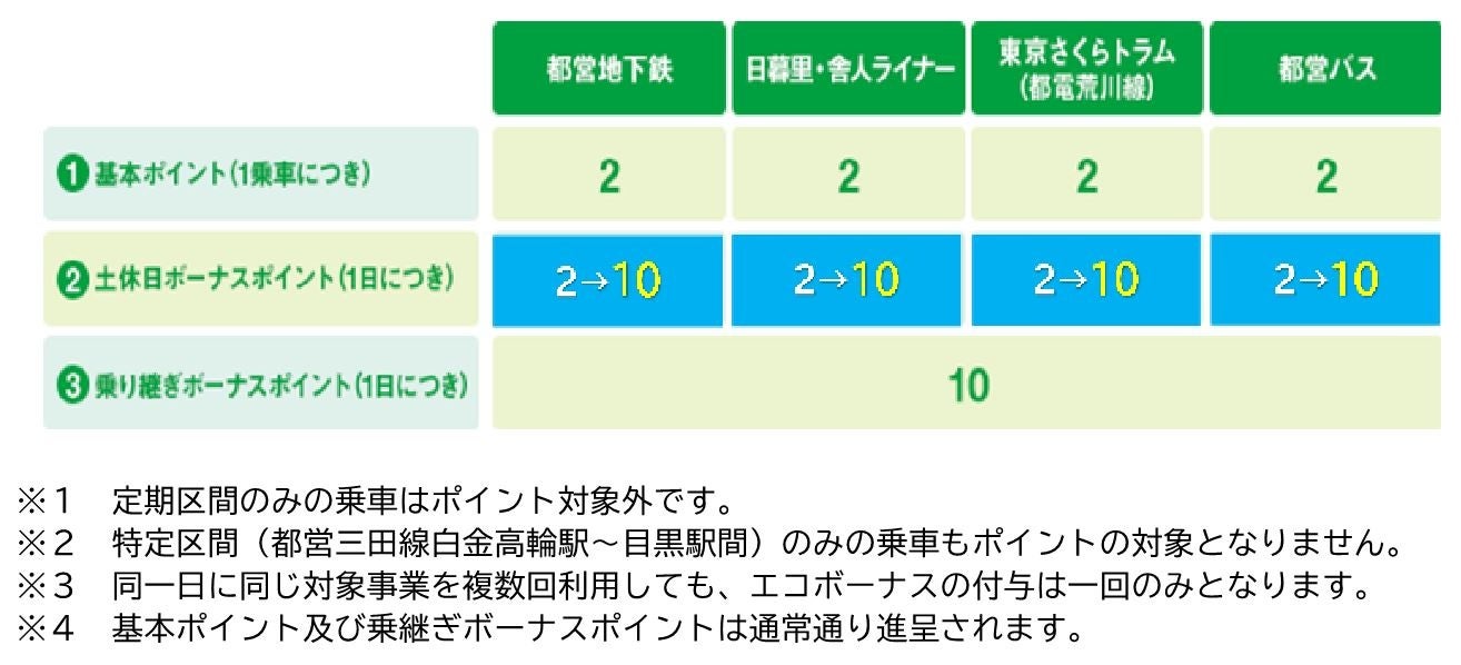 ToKoPo乗車ポイントに加え、都営地下鉄(浅草線、三田線、新宿線、大江戸線)及び日暮里・舎人ライナーの