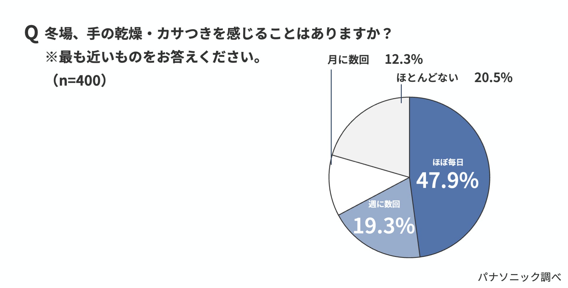 約半数の人が冬場に手の乾燥を「ほぼ毎日」感じている