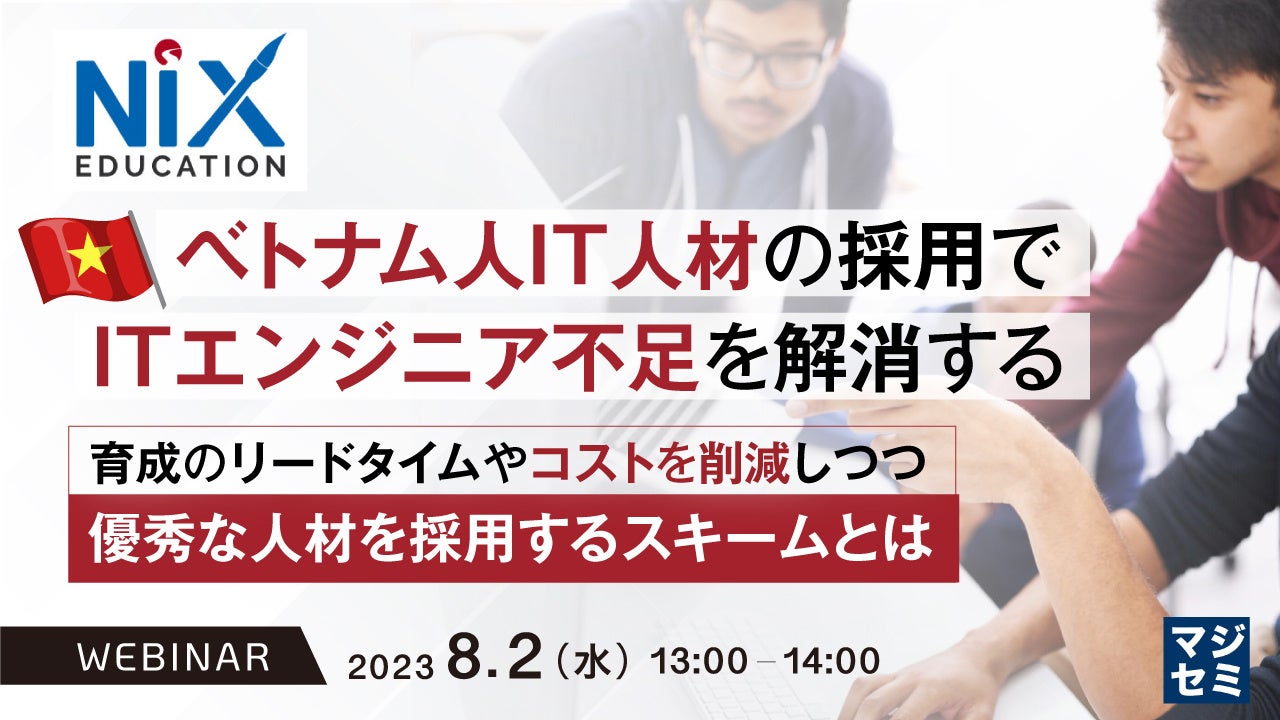 本ウェビナーでは、外国人のIT人材採用の課題を解決できるだけでなく、育成のリードタイムやコストも削減できるベトナム人IT人材の採用スキームをご紹介します。