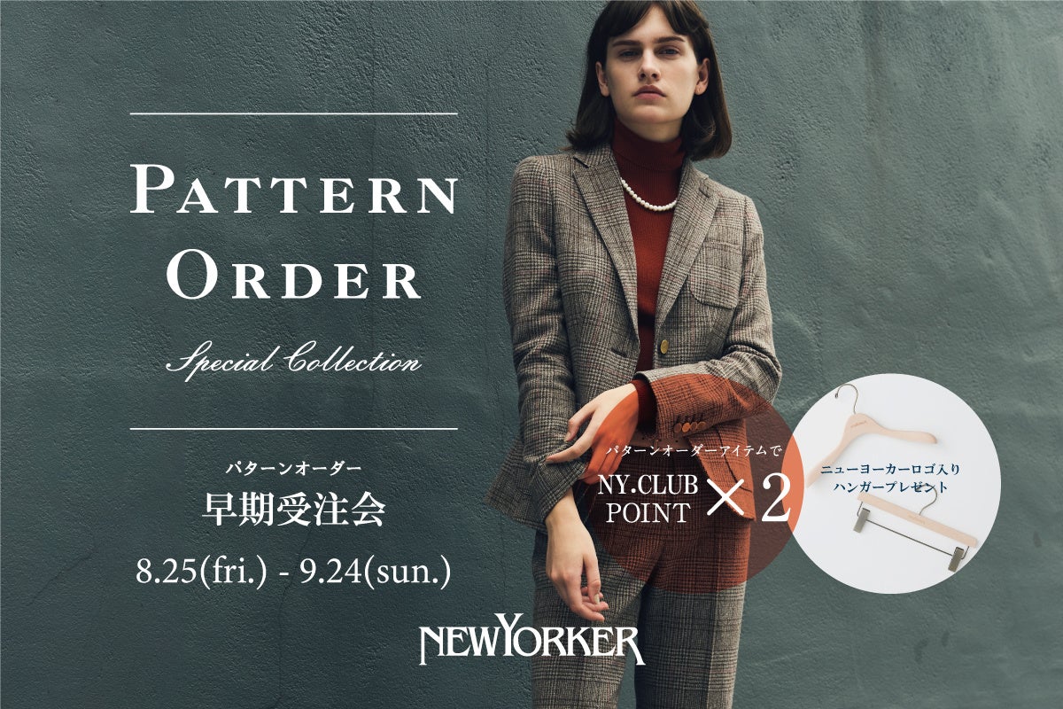 お客様の体型やお好みに合わせて、自分だけのオリジナルの1着をお仕立てする「ニューヨーカー パターンオーダー」。この生地は好きだけど、違うデザインが欲しかった・・・デザインは気に入ったけど生地を変えたい・・・など。デザインと生地の組み合わせを楽しんでいただけるものパターンオーダーの魅力です。早期受注会では、アーカイブ生地やニューヨーカーオリジナルファブリックを多数ご用意しています。普段スーツを着用しない方にも初めての1着としてご満足いただけるラインアップです。会期中は、「NY.CLUB」ポイントが通常の2倍となります。さらに「ニューヨーカーロゴ入りハンガー」をプレゼントいたします。