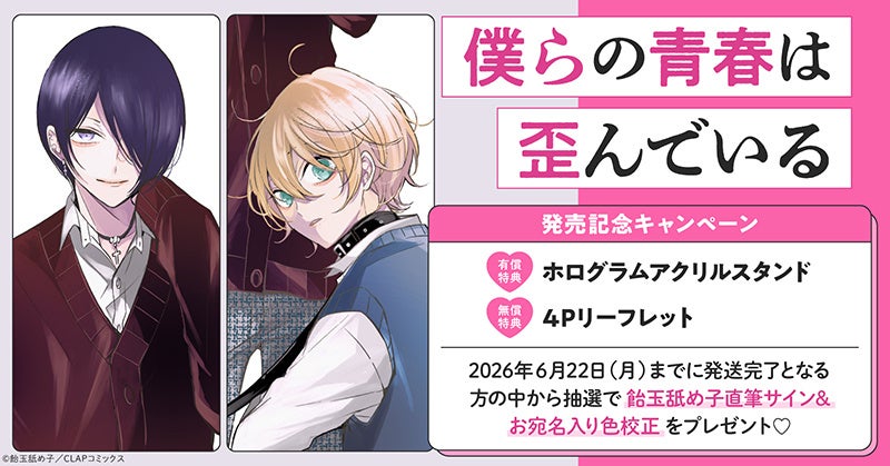 直筆サイン入り色校が当たる!飴玉舐め子先生『僕らの青春は歪んでいる』発売記念キャンペーン開催!【ホーリンラブブックス】