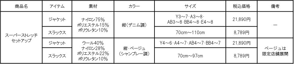 新たに販売を開始した「スーパーストレッチセットアップ」は、きちんと感がありながらも伸度15%以上という優れた伸縮性で着心地抜群のアイテムです。