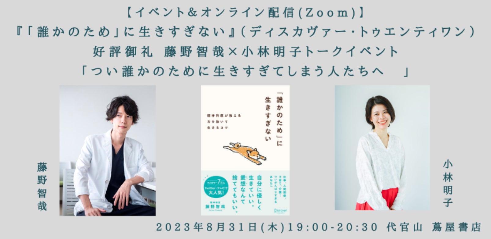 『「誰かのため」に生きすぎない』好評御礼!精神科医・藤野智哉×小林明子トークイベント「つい誰かのために生きすぎてしまう人たちへ」開催決定