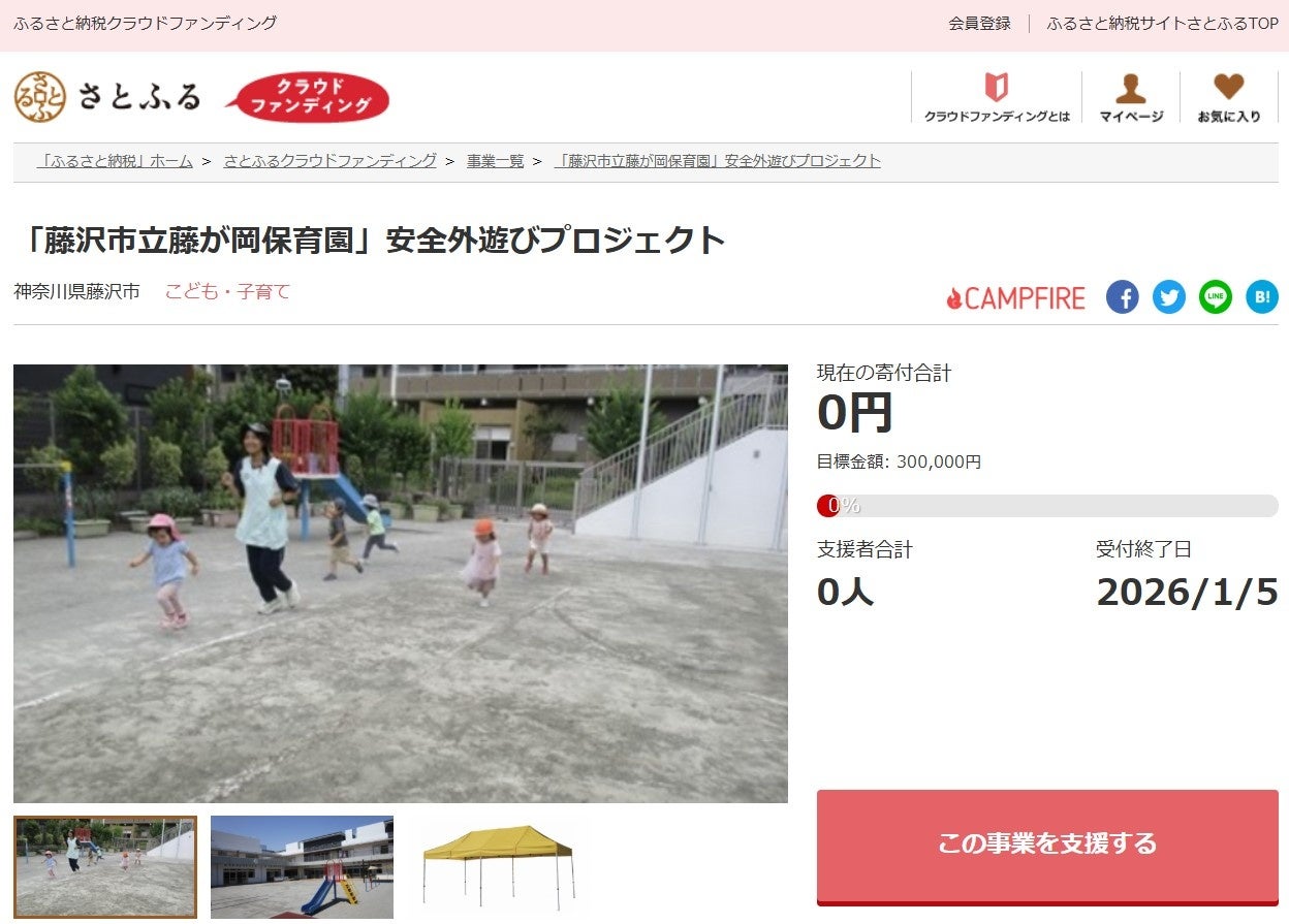 神奈川県藤沢市とさとふる、市内の2つの保育園で子どもたちが生き生きと遊べる環境を整備するため、寄付受け付けを開始