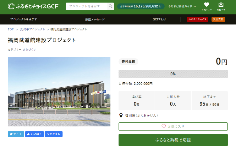 福岡県とふるさとチョイス、ふるさと納税制度を活用したガバメントクラウドファンディング®で、福岡武道館建設プロジェクトを開始