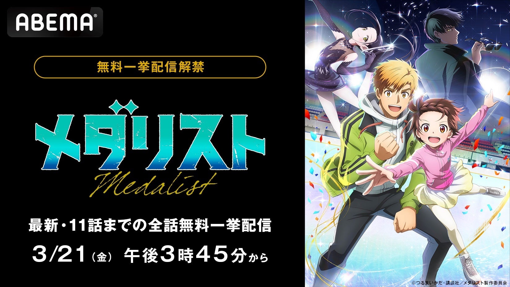新しい未来のテレビ「ABEMA」は、2025年3月21日(金)に、新作冬アニメ『メダリスト』を最新話まで全話無料振り返り一挙配信いたします。