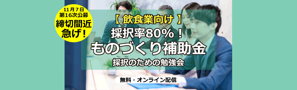【飲食業向け】採択率80%!ものづくり補助金 採択のための勉強会【助成金なう】