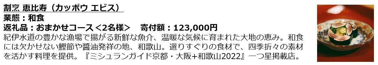 和歌山市では『ミシュランガイド京都・大阪+和歌山 2022』の掲載店、地元の人気店を中心に、近隣エリアか
