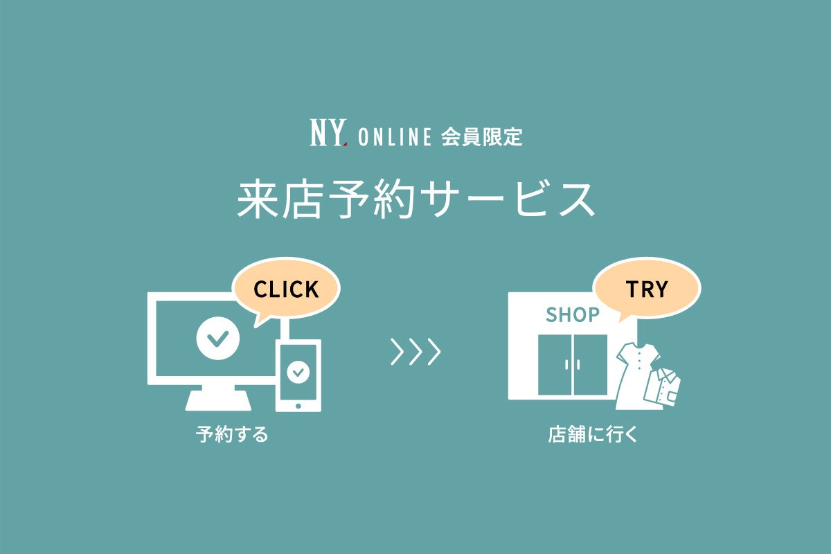 NYオンラインより「商品を実際に手に取ってから購入したい」「待たないであのショップスタッフに接客してほしい」などのお客様からのニーズにお応えして、店舗にて来店予約サービスの運用(限定店舗・一部商品)をスタートいたします。