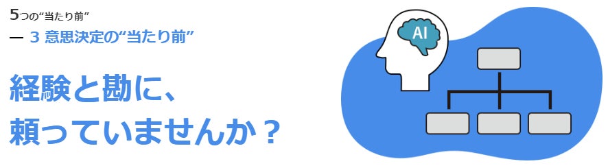 「経験と勘」だけに頼るのではなく、「AI×データ」の裏付けをもって営業活動や経営を行うことは、意思決定のスピードを上げると共に[高梨2] 、新たな市場や顧客ニーズの発掘にもつながります。