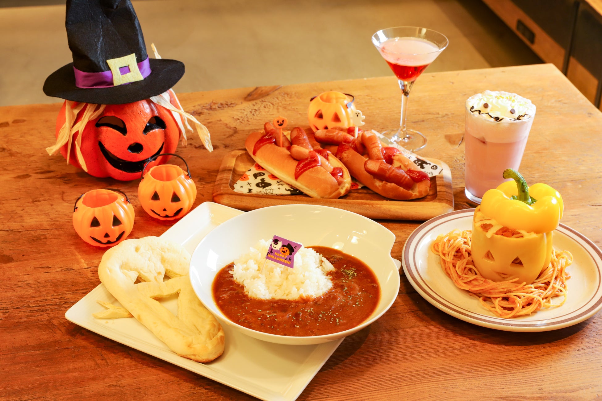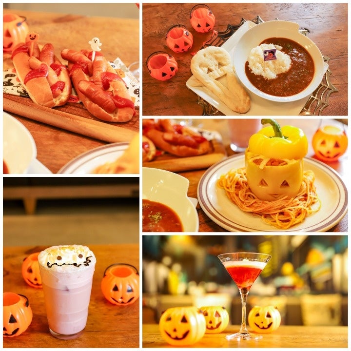 また、10月7日から約1か月にわたって開催されるハロウィンフェア。モクシーカフェ&バーのシェフが手掛けるハロウィンをテーマとしたフード・ドリンクメニューには、ソーセージを指に、ケチャップを血に見立てたゾンビの指ホットドッグや、パプリカを丸々1つオーブンで焼き上げ、ジャコランタンに見立てたミートソースパスタ、ナンをお化けの形にかたどったかわいらしいカレーなどをご用意いたしました。ドリンクはホイップクリームがお化けになったピンク色のミルクティーや、少し奇妙な見た目の甘いカクテルをモクシー大阪本町のミクソロジストが考案。ランチタイムに、お仕事終わりの1杯に、おひとりでもご友人とでも様々なシチュエーションで楽しめるフードメニューから、ドリンクメニューまでを取り揃えております。