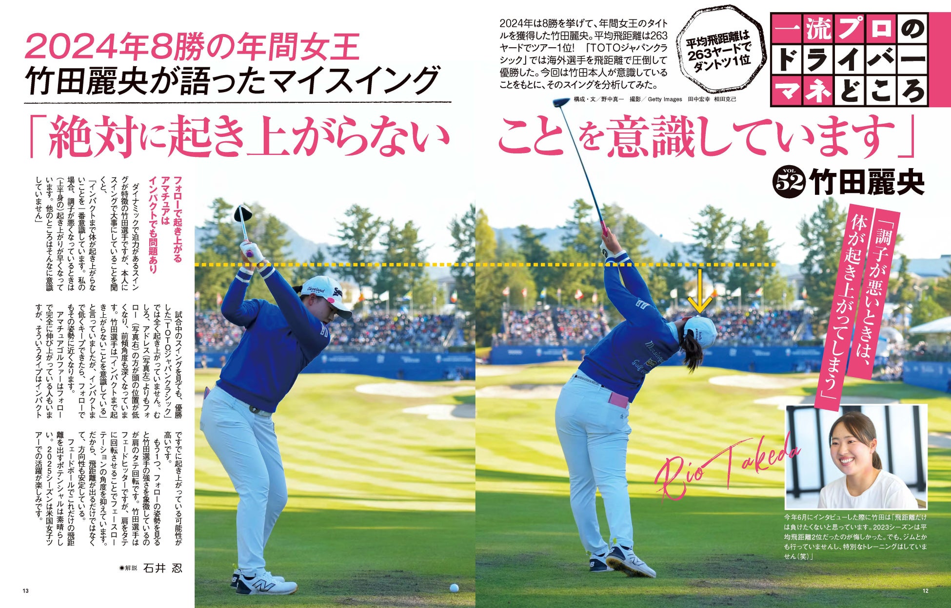 年間女王に決定した竹田麗央プロは、ドライバーの平均飛距離も1位に輝いた。そんな竹田飛ばしのポイントをスイング連続写真で解説。