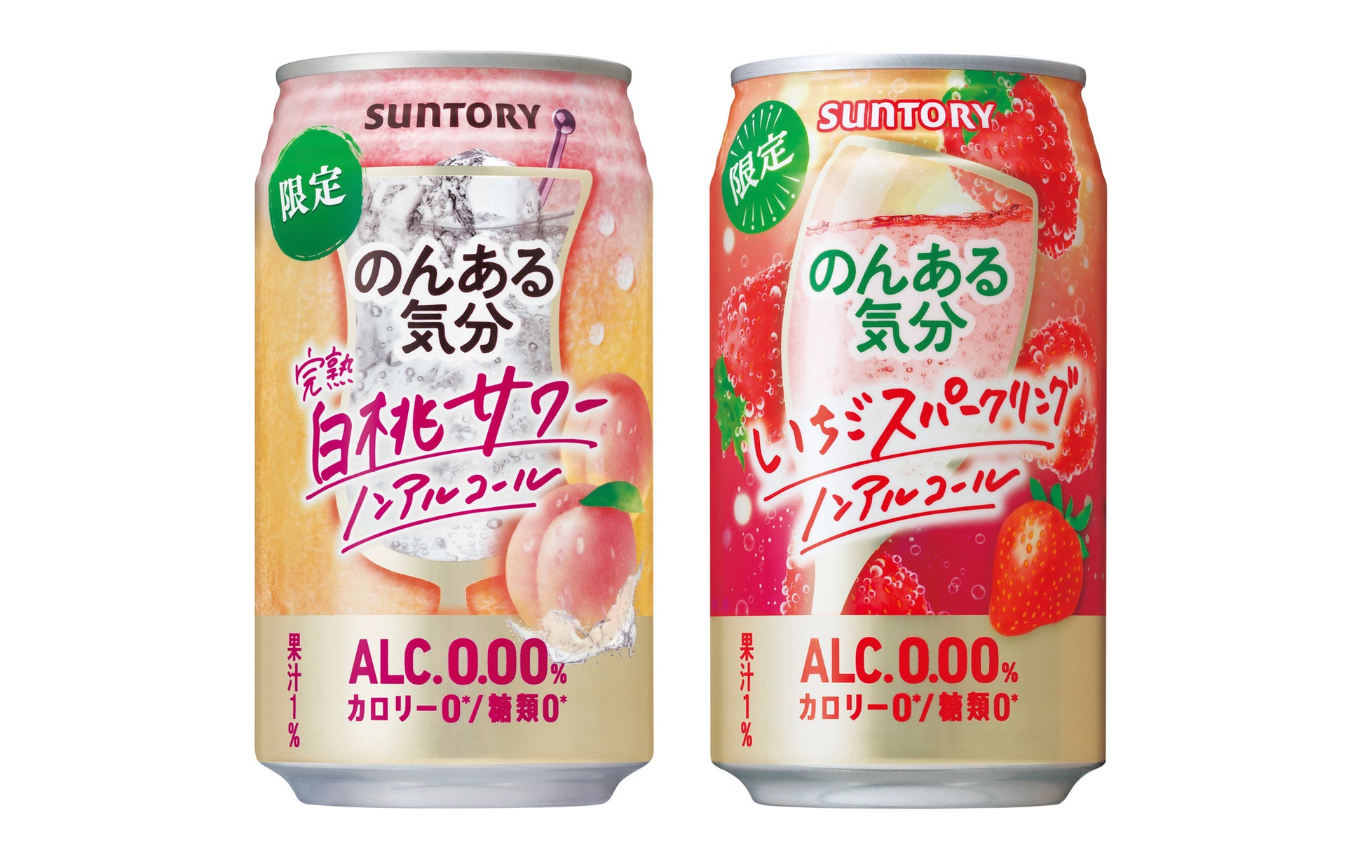 「のんある気分〈完熟白桃サワー ノンアルコール〉」「同〈いちごスパークリング ノンアルコール〉」期間限定新発売