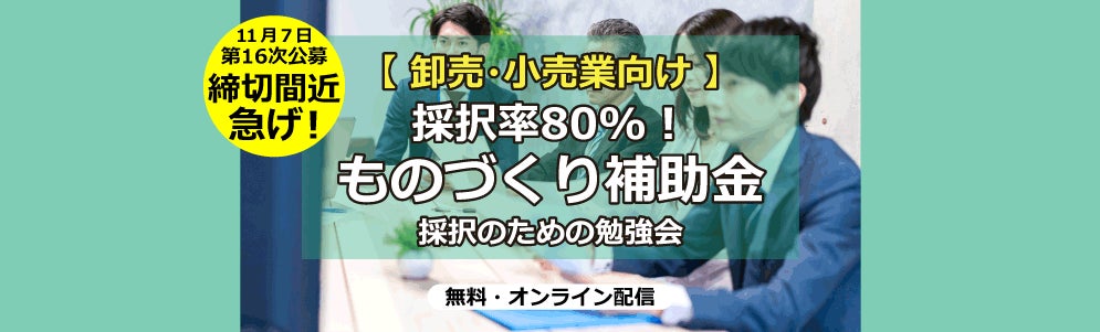 【卸売・小売業向け】採択率80%!ものづくり補助金 採択のための勉強会【助成金なう】