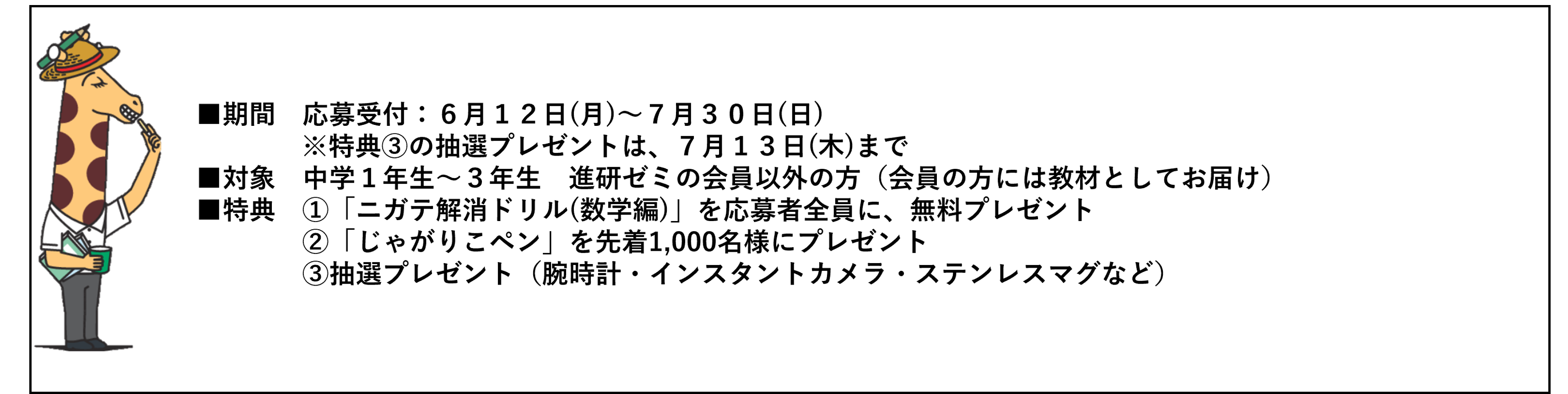 ニガテになりやすい単元を厳選したドリルで夏の学習を応援。応募は7月30日まで