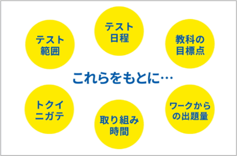 「進研ゼミ中学講座」は、一人ひとりのテスト日程や目標、取り組み時間に合わせて、専用の学習プランを自動で生成。「上手な勉強の仕方がわからない」と感じるお子さまでも迷うことなく学習に取り組める講座設計。自分のペースで学びながらも、1回1回のテストの本番で確実に結果を出し、志望校合格につなげられる教材にこだわり続けています。
