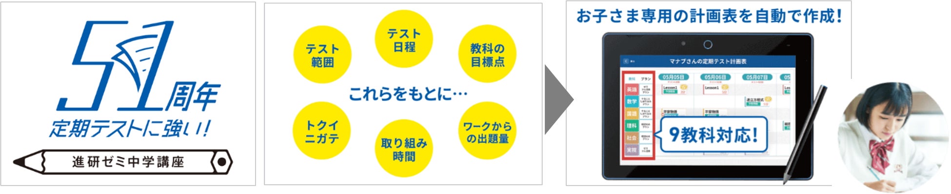 「進研ゼミ中学講座」は、全国の中学生の定期テストの成功を応援いたします。