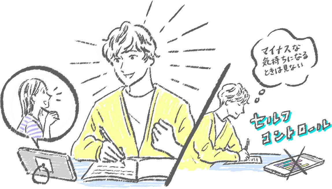 友人と勉強時間数を共有したり、オンライン自習室を活用して一緒に勉強をしたりするなど、同じ時間や空間を共有しながら切磋琢磨する学生らしい共体験※5のエピソードが多く出ました。いっぽうで、周りが頑張る様子を見てマイナスな気持ちになってしまうときは見ないなど、モチベーションを維持しながら切磋琢磨できるようコントロールしているという意見も挙がりました。「若者の『ヘルスケア』に対する意識とは?」をテーマにしたレポート6でも発見した、セルフコントロールに長けるイマドキの若者らしさが感じられます。