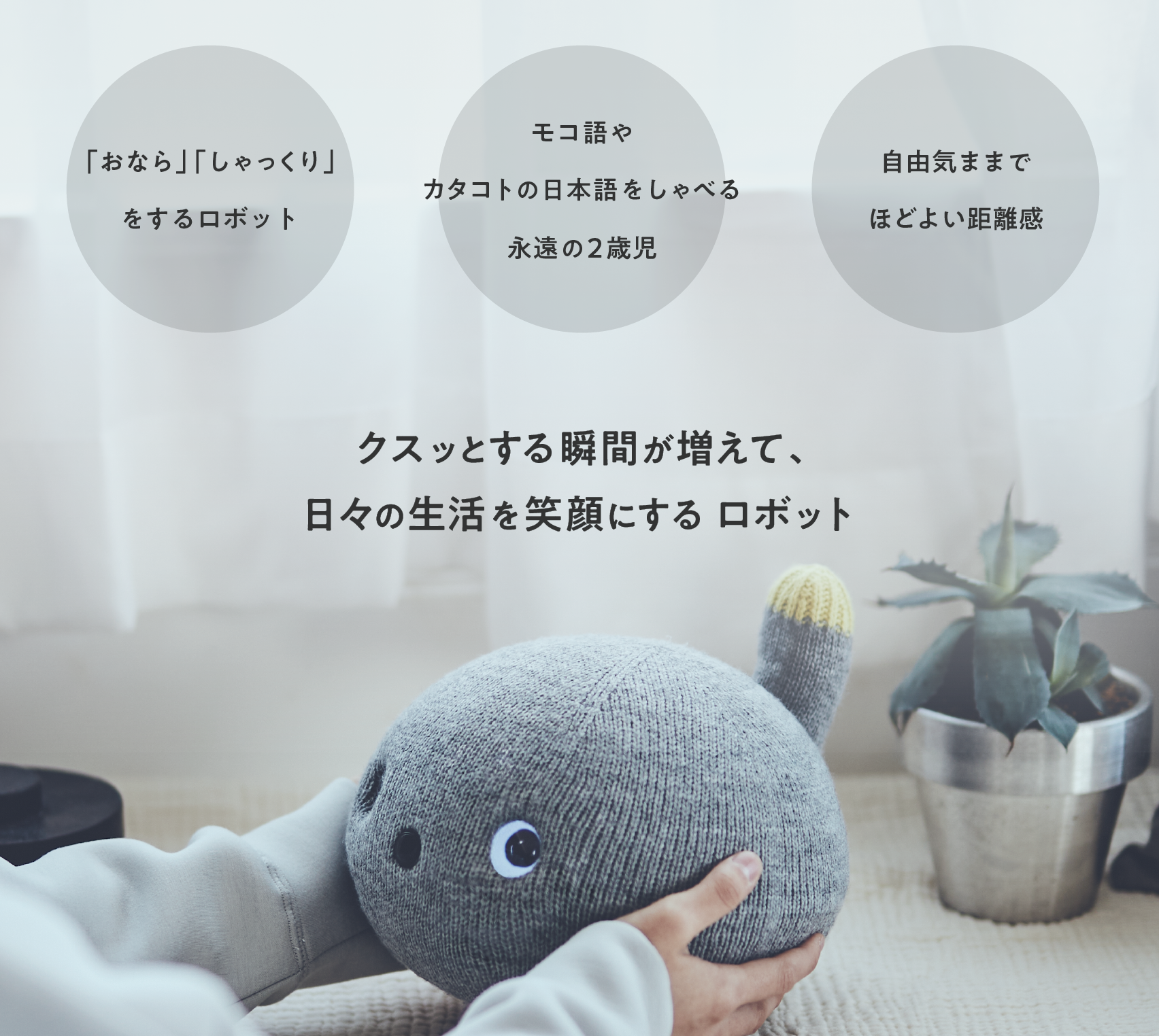 ニコボは、のんびりとしたマイペースな性格で、人との間に心地よい距離感を保ちながら寄り添います。カタコトの日本語で突拍子もないことを話したり、ふいに「おなら」をしたりと、思わず笑ってしまうようなユニークなロボットです。