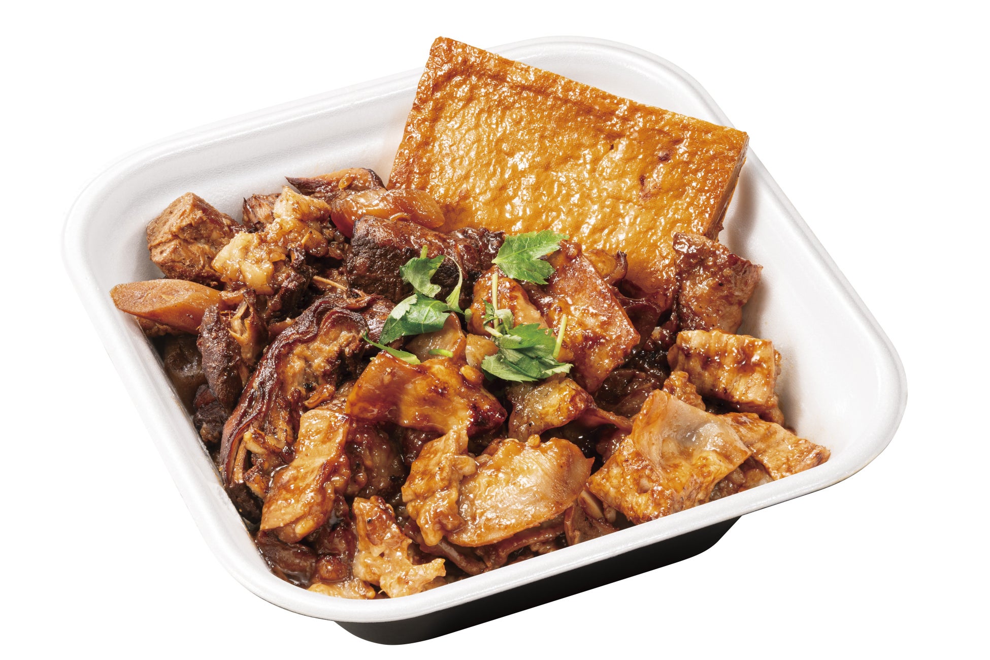 看板メニュー「肉めし」の、秘伝のかえしとこだわりの割り下で丁寧にじっくり煮込んだ肉と豆腐。そこへ、濃厚な味噌ダレを絡めて香ばしく焼きあげた牛ホルモンを盛り合わせました。2つの異なる食感と旨味を一度に楽しむことができる、ボリューム満点の一杯に仕立てました。