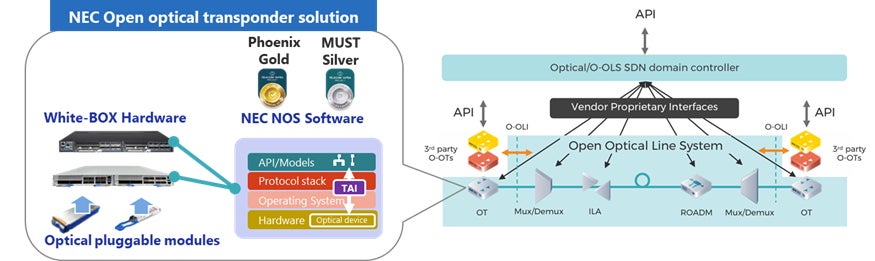 NECのネットワークオペレーティングシステム(NOS)が、Telecom Infra Project(TIP 注1)が定めるMandatory Use Case Requirements for SDN for Transport(MUST)の要件を満たしたことをネットワークオペレーターによるテストにより確認され、TIP MUST Silverバッジ認定を獲得しました。このNOSはTIPの「Phoenix」と呼ばれる400G光トランスポンダソリューションに適用され、光ネットワークのオープン化ソリューションとして商用レベルで展開されています。