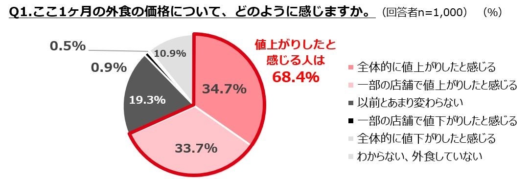 値上がりしたと感じる人は7割弱、値上げに一定の理解を示す結果に