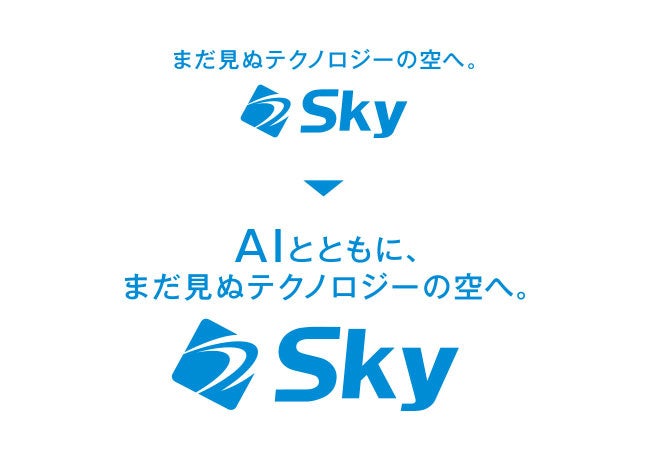Sky株式会社は、コーポレートメッセージ(タグライン)を、従来の「まだ見ぬテクノロジーの空へ。」から「AIとともに、まだ見ぬテクノロジーの空へ。」に変更いたしました。