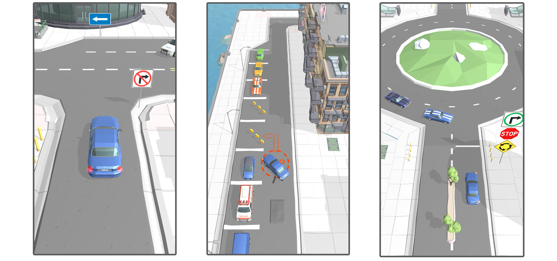 「Follow Sign」は交通標識をテーマにしたドライブシミュレーションゲームです。事故を避けてステージをクリアするシンプルなゲーム内容で、子供から大人まで簡単な操作で楽しむことができます。様々なシチュエーションが200ステージ以上登場し、楽しみながら自然と交通ルールを学ぶことができるのも本作の特徴です。