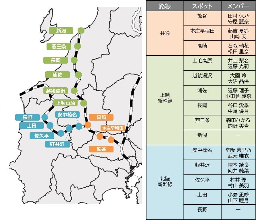 新宿駅(森田 ひかる)、秋葉原駅(松田 里奈)、水道橋駅(山﨑 天)、高崎駅(石森 璃花)、新潟駅(遠藤 理子)、長野駅(小島 凪紗)